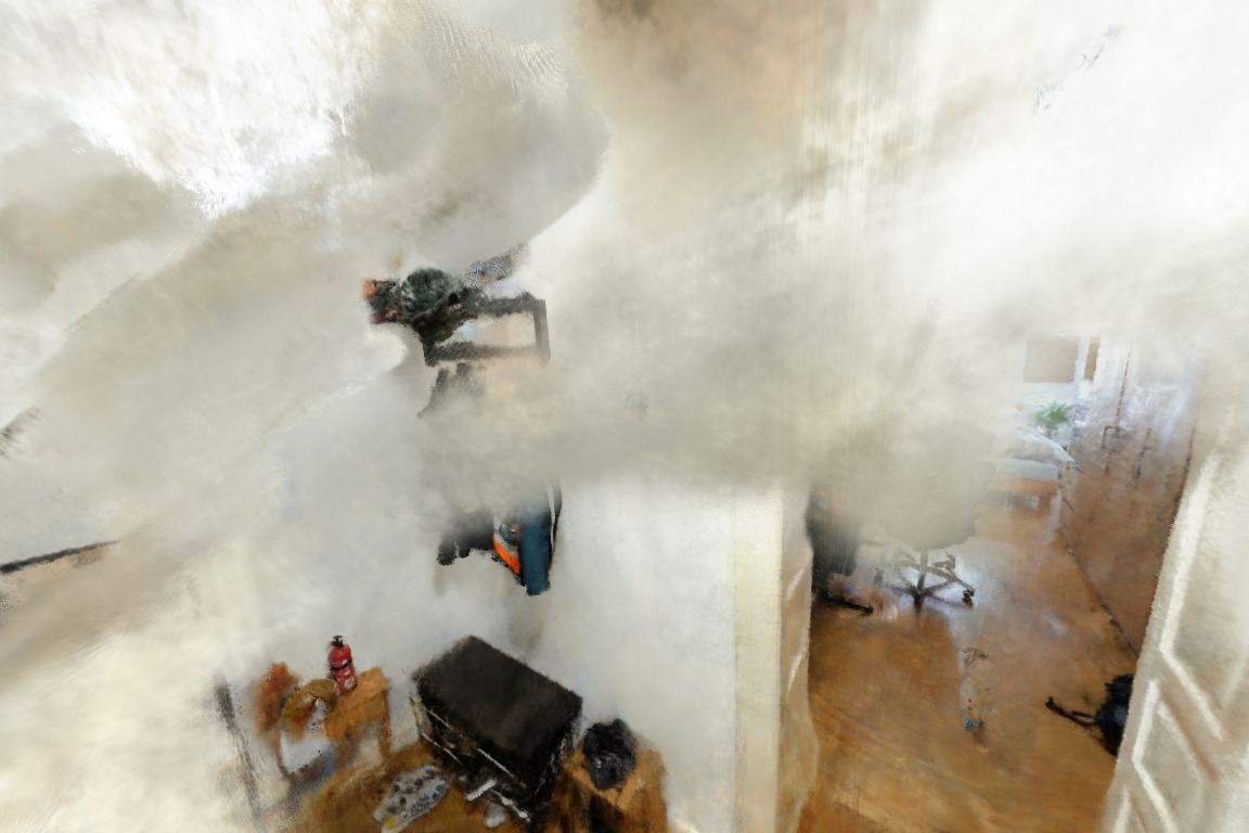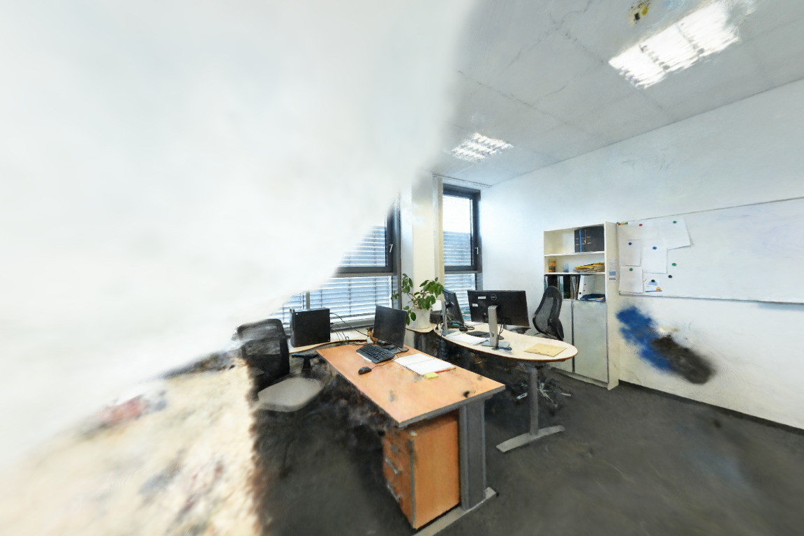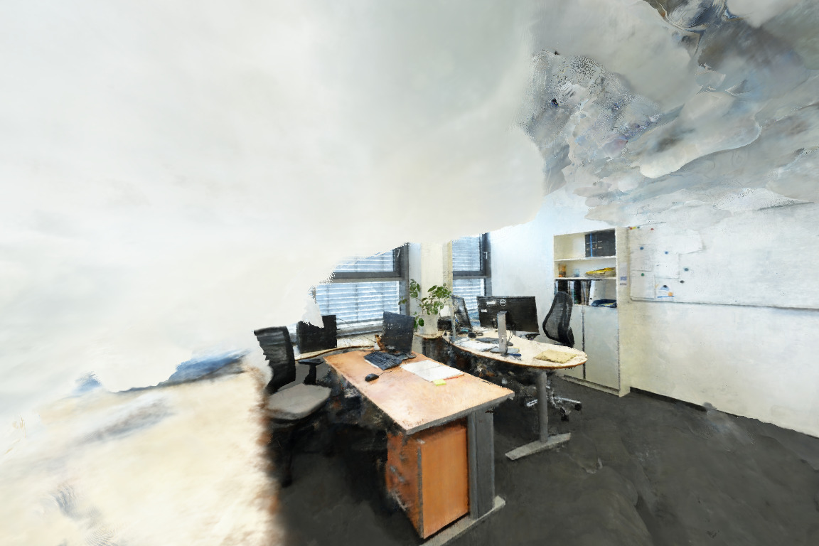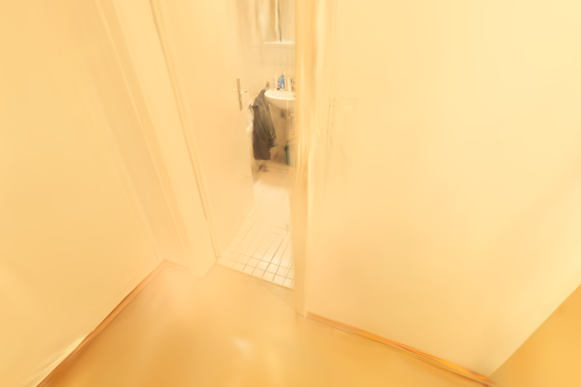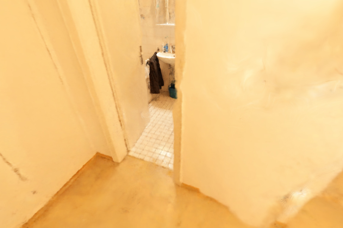 Qualitative results of novel view synthesis on ScanNet++ dataset. We compare our framework against NeRFacto, depth-regularized NeRFacto, 3DGS, and NeLF-Pro under severe extrapolation scenario.