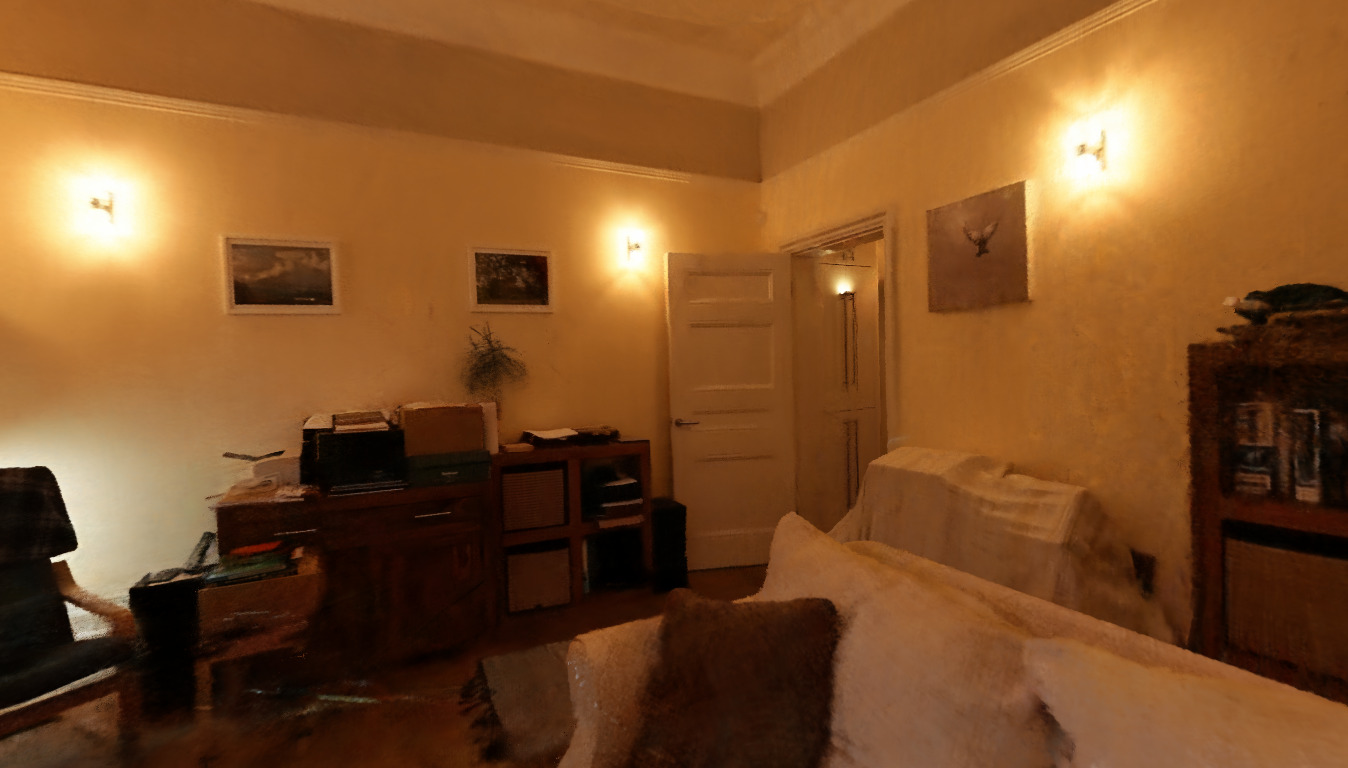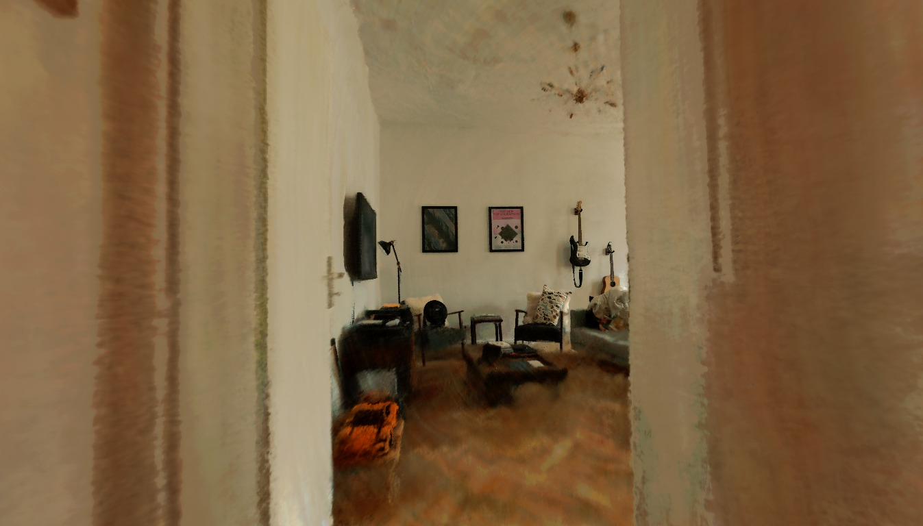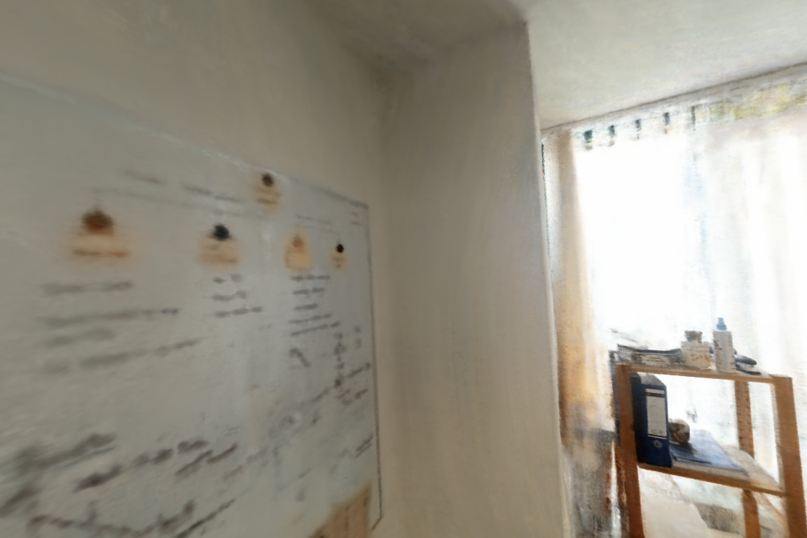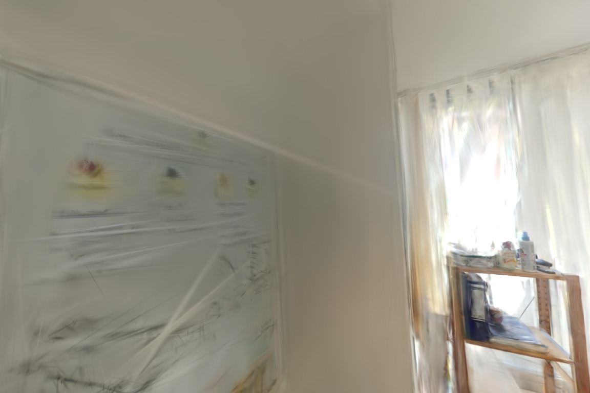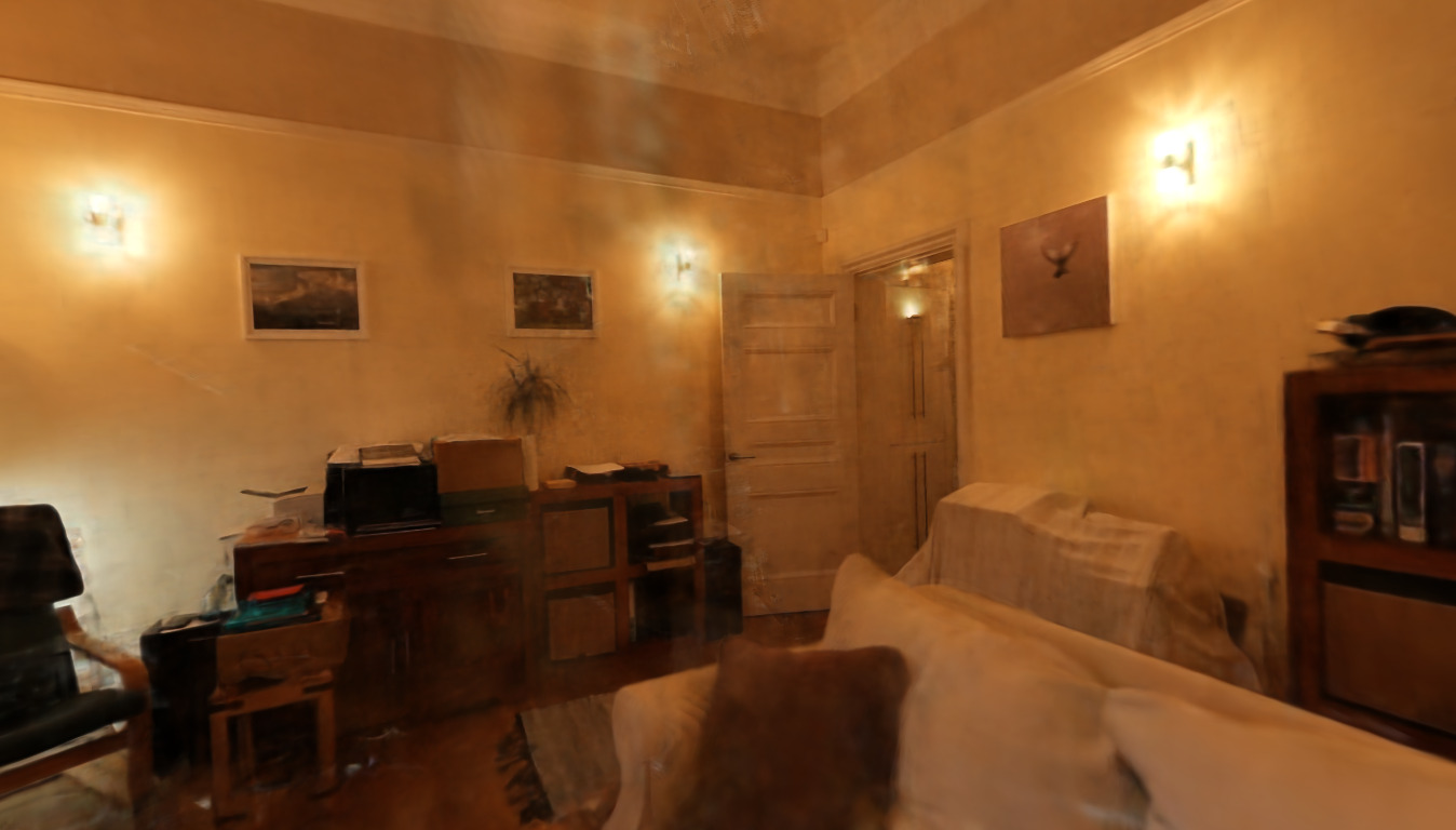 Qualitative comparison on ScanNet++. Our method outperforms state-of-the-art 3D Gaussian Splatting baselines under the sparse-view setting, producing sharper textures and fewer artifacts in challenging indoor scenes.